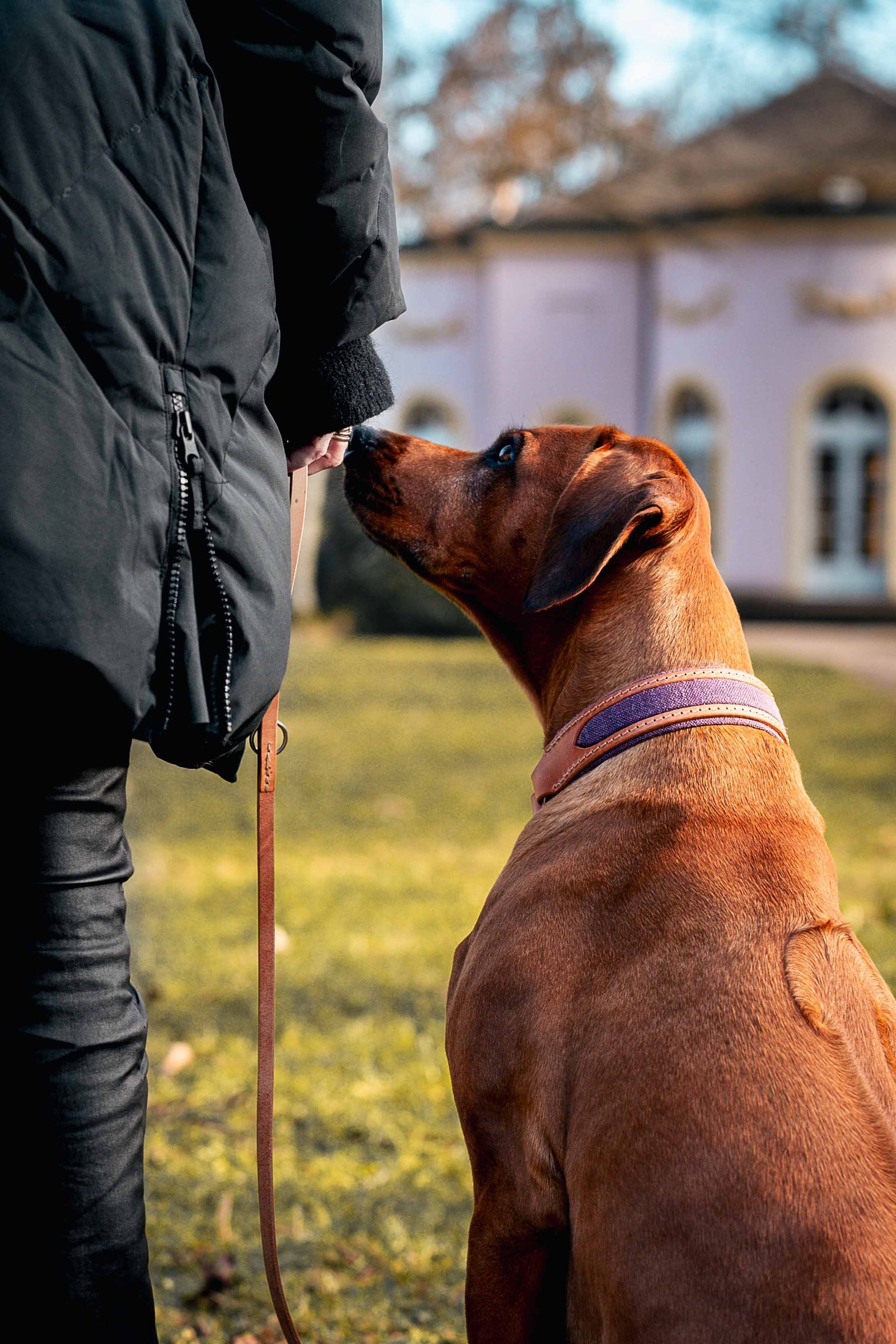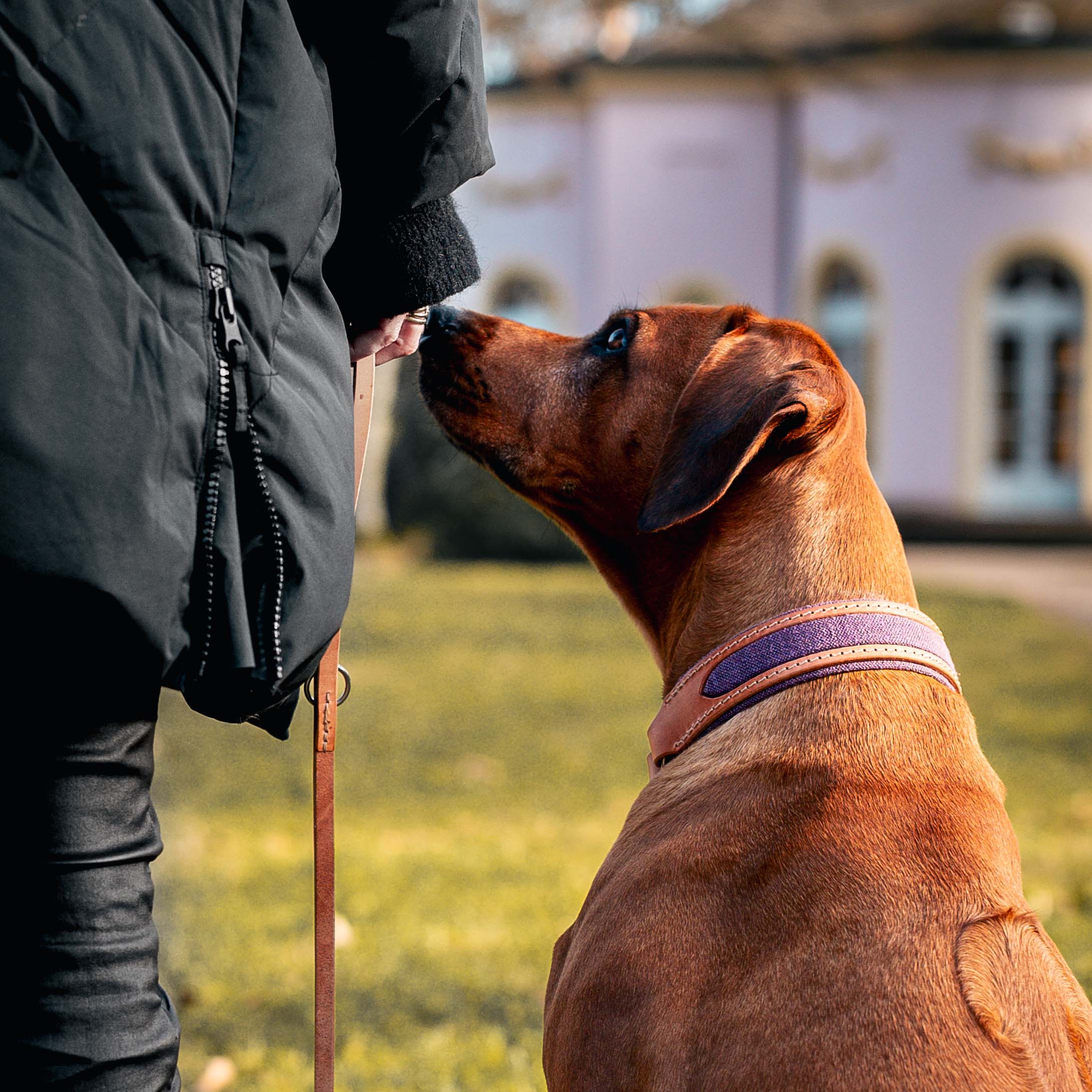 CAjA verwendet ausschließlich pflanzlich gegerbte, nicht deckbeschichtete Nappa-Leder. In seltenen Fällen – etwa bei starkem Regen in Kombination mit einem chemischen Zeckenhalsband – kann es zu leichten Farbveränderungen kommen. Bei Unsicherheiten oder Fragen kontaktiere uns gerne direkt.