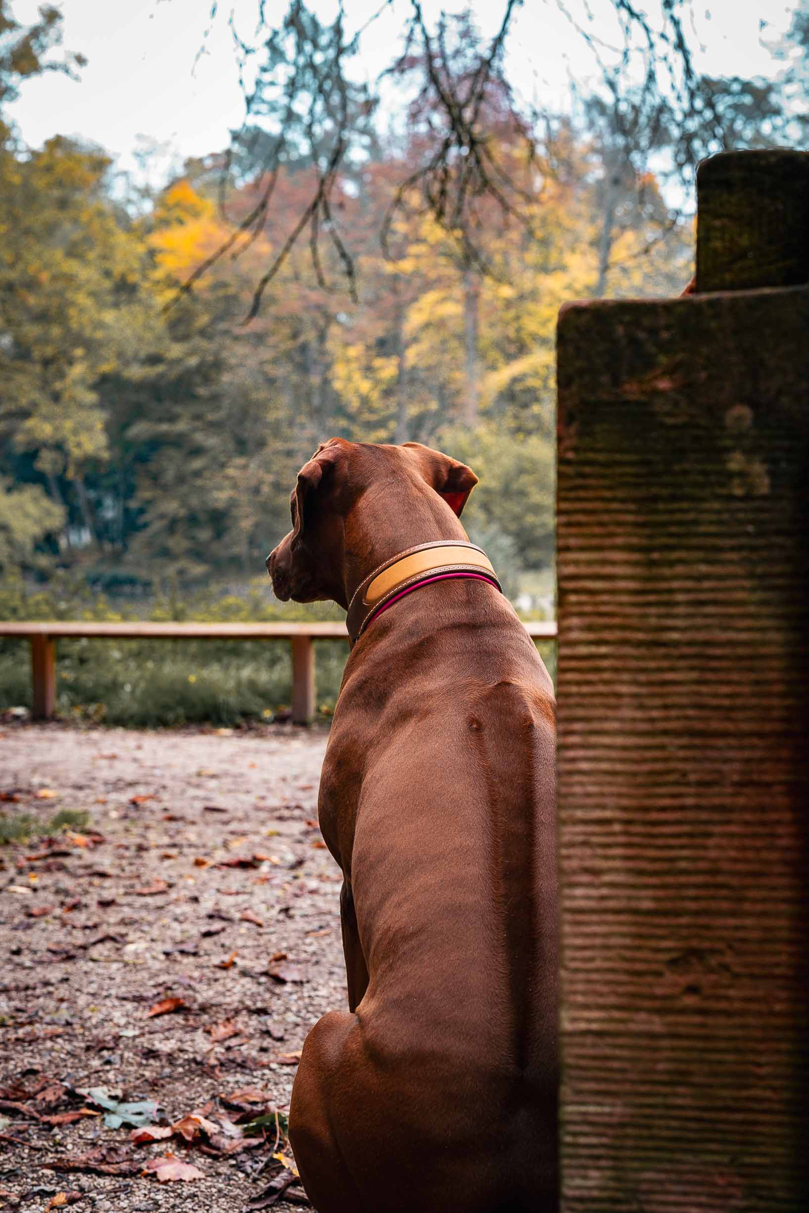 CAjA verwendet ausschließlich pflanzlich gegerbte, nicht deckbeschichtete Nappa-Leder. In seltenen Fällen – etwa bei starkem Regen in Kombination mit einem chemischen Zeckenhalsband – kann es zu leichten Farbveränderungen kommen. Bei Unsicherheiten oder Fragen kontaktiere uns gerne direkt.